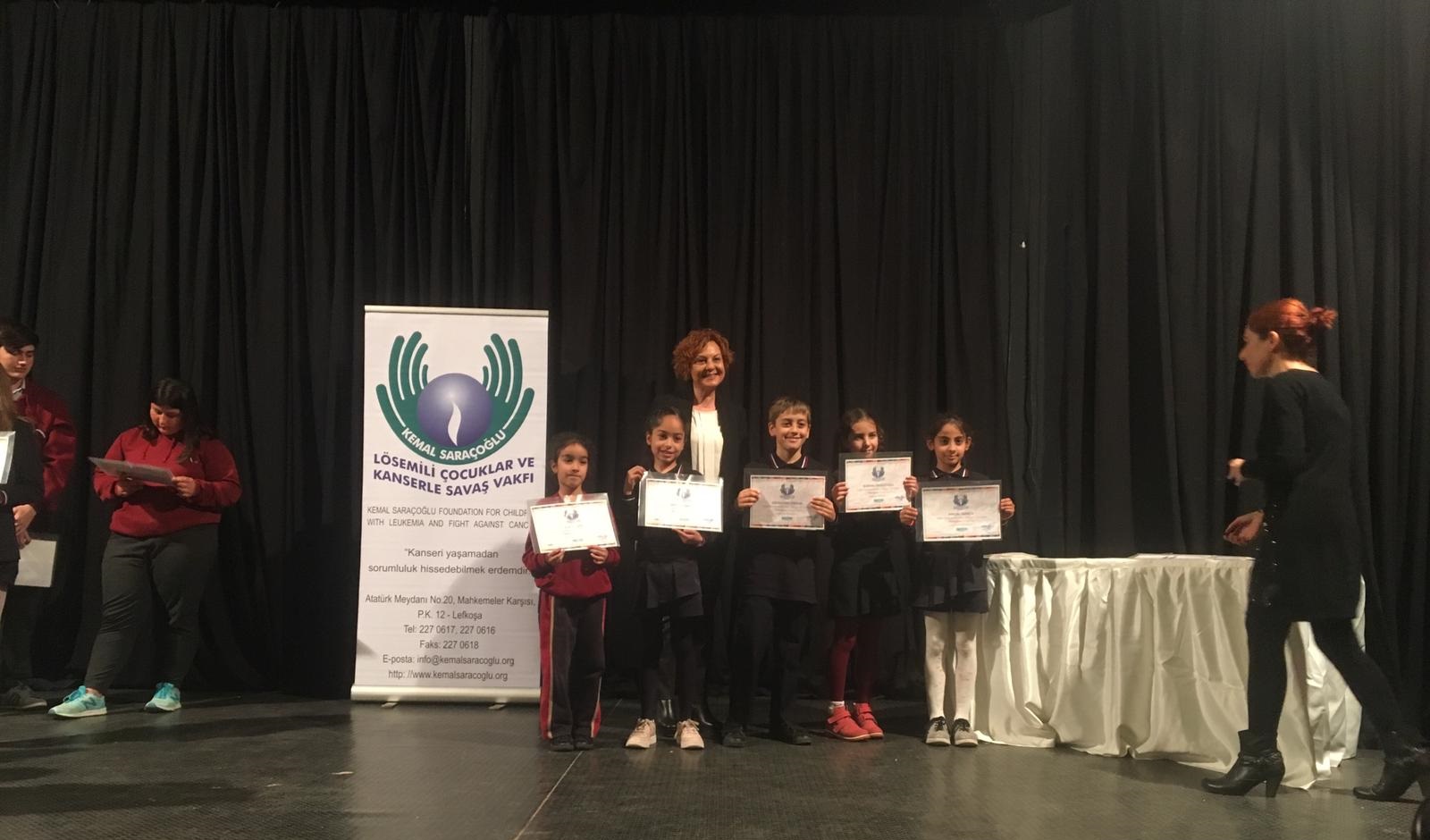It was stated that this year Kemal Saraçoğlu Foundation for Children with Leukaemia and Fight Against Cancer organised the 18th poster and slogan competition titled as `Healthy Life and Environment I Dream About` with the aim to inform young generations on fight against cancer and also nurture sensitivity on in the issue and 14 students from the Near East Junior College received awards.