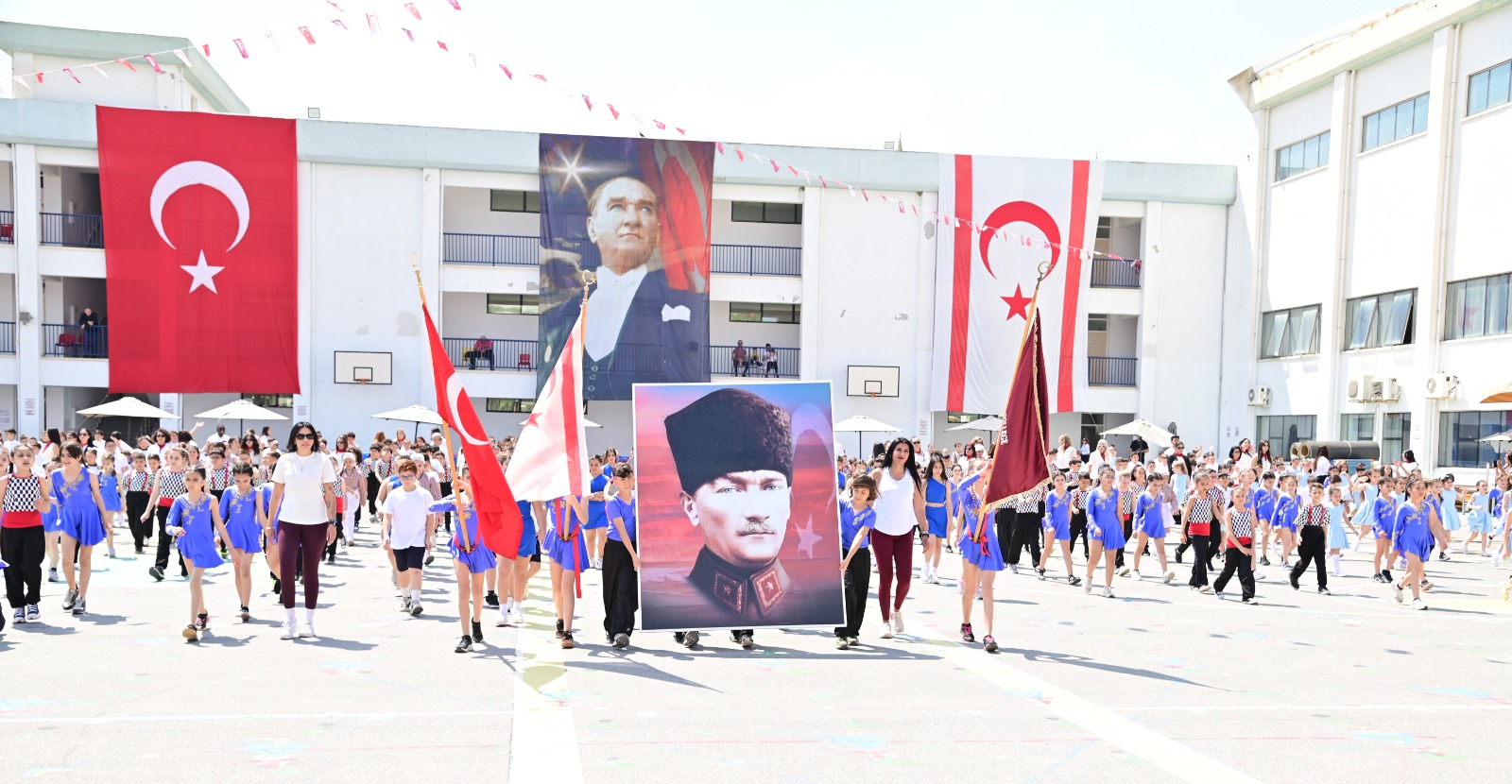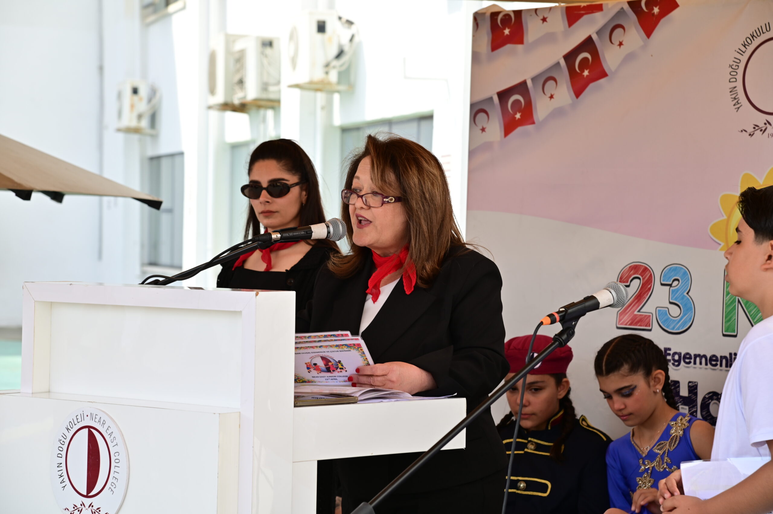Yakın Doğu Yeniboğaziçi İlkokulu Müdürü Esen Bahadır, 23 Nisan’ın yalnızca bir bayram değil, aynı zamanda çocuklara duyulan güvenin en güçlü ifadesi olduğunu belirterek, “Türkiye Büyük Millet Meclisi’nin açılışının yıl dönümünü ve dünyada çocuklara armağan edilen tek bayram olan 23 Nisan’ı kutlamanın gururunu yaşıyoruz. Mustafa Kemal Atatürk’ün çocuklara duyduğu inanç, geleceğin onların ellerinde yükseleceğinin en açık göstergesidir” dedi.