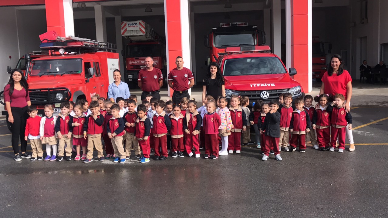 According to the press release issued by the Directorate of Press and Public Relations of Near East University, due to “get to know occupations” and “when I grow up” themes focused on at the school, the students were taken on an observation trip to the fire brigade. The students were informed about the duties of fire fighters and told that they not only put out fires but also saved animals and people from building wrecks and from situations alike; in short they saved lives. Furthermore, the students were show the different equipment which fire fighters used and how fire fighters extinguished fire.