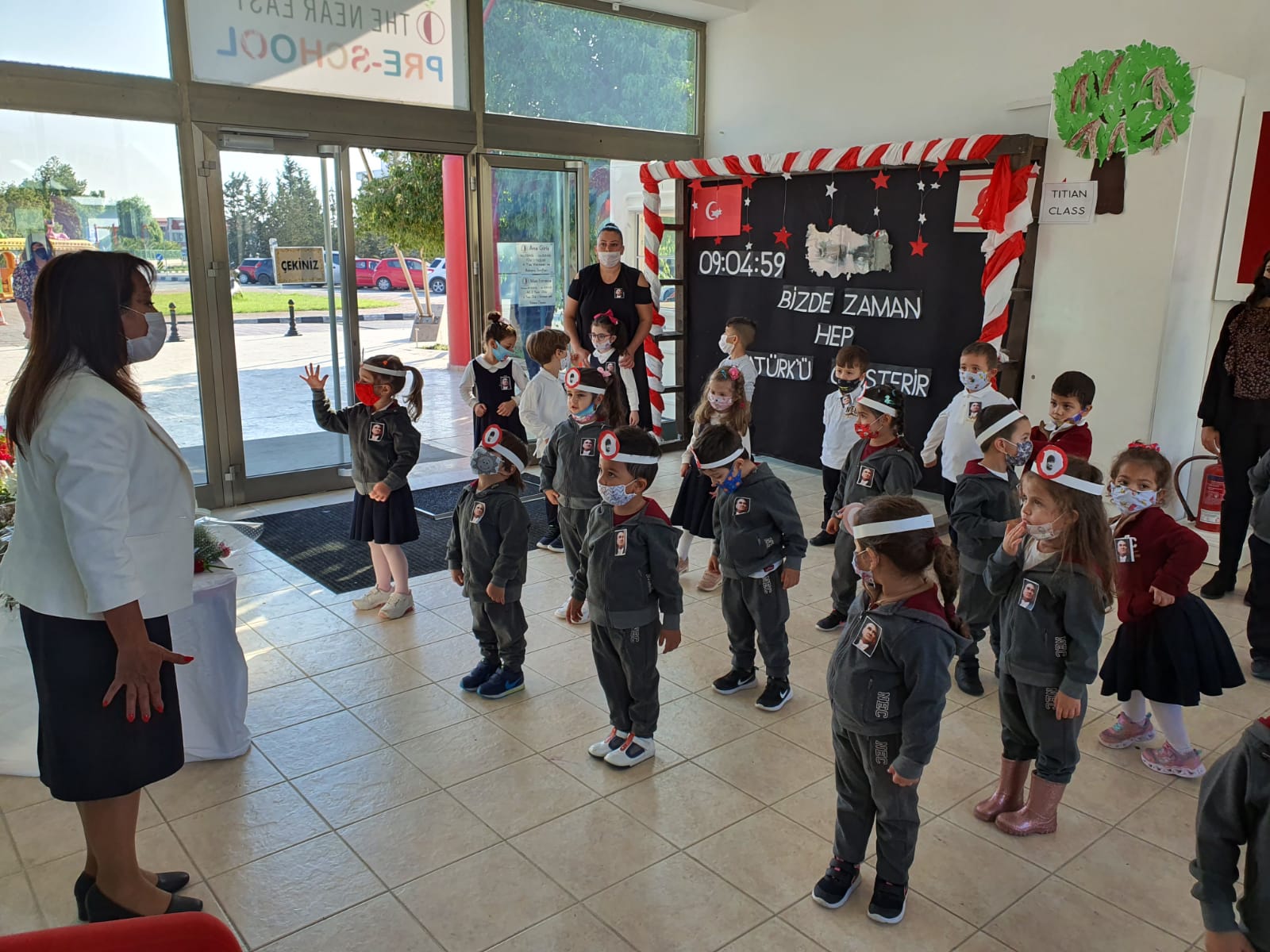 Yakın Doğu Okul Öncesi Lefkoşa şubesinde, Ulu Önder Mustafa Kemal Atatürk için anma töreni gerçekleştirildi. Bu yıl pandemi nedeni ile toplu tören yapamasakda, okulun farklı noktalarında oluşturulan Atatürk Köşelerinde anma törenini düzenledik. Atatürk büstünü çiceklerle donatan öğrencilerimiz saygı duruşu, istiklal marşı ardından hazırladıkları şarkı ve şiirleri Atamıza hitaben söylediler.