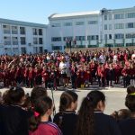 Cumhuriyet şiirlerinin okunduğu törende, okul koro ve orkestrası marşlar seslendirdi. Yakın Doğu İlkokulu öğrencileri, hazırladıkları gösterileri sergilerken yaşadıkları coşku ve mutluluk gözlerden kaçmadı.